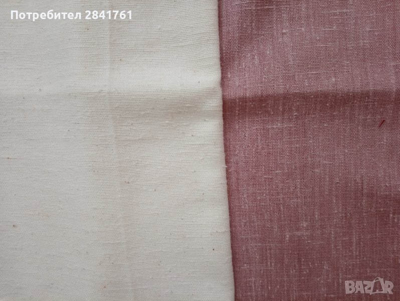 Три парчета плат с приблизителни размери: лилаво - 103/ 116 см; бяло - 111/ 116 см; розово - 106/ 120 см. Подходящи за направа на декоративни възглавници или малки покривки. Реалните цветове са малко по-бледи, отколкото на снимките. Цената е за трите парчета.
