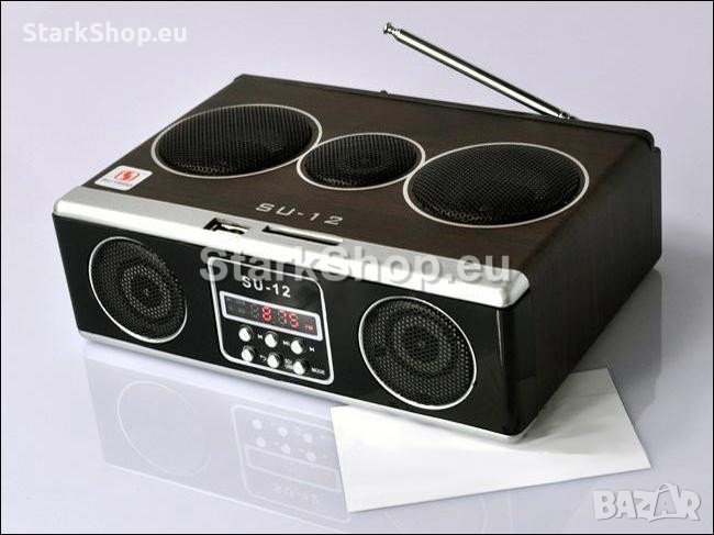 Мини музикална система с радио и дистанционно, на която музиката се възпроизвежда като се чете директно от карта памет (microSD/MMC) или от Флаш паметта (Флашка).