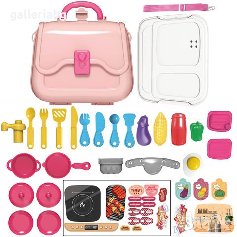 Страхотна детска малка преносима кухня в куфарче с 33 части.