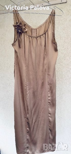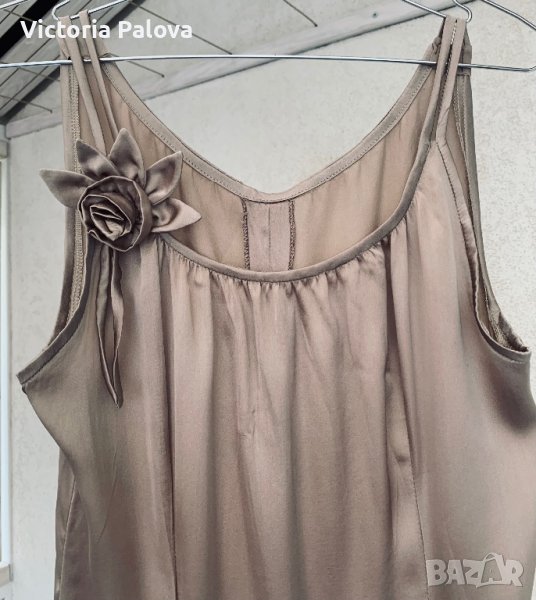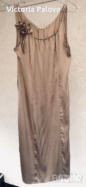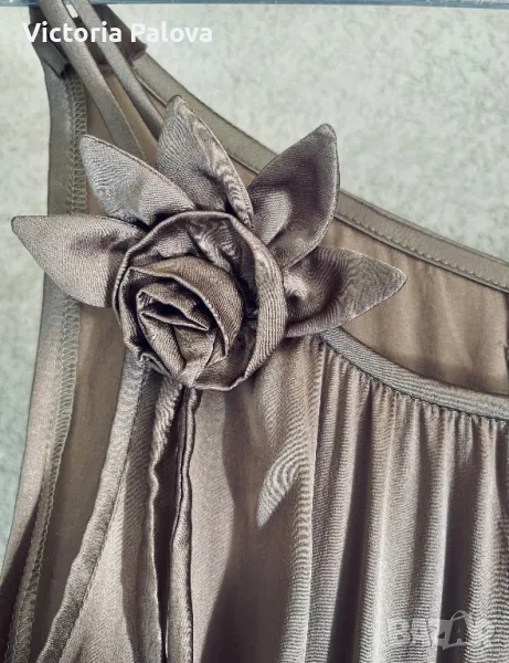 Много красива рокля с дълбок цип отзад и изключително красиво модерно цвете отпред. Дължината е 108 см с презрамка, 86 см е от мишница. ГО - 50см, талия - 44см, ханш - 52см, дължината на ципа е 48см. Роклята е неизползвана, много красива и много актуална.