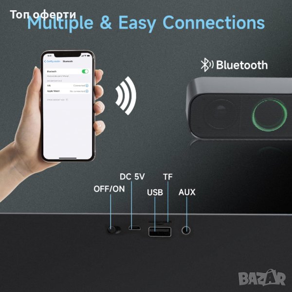 Лесен за носене: Този високоговорител тежи само 1,1 паунда (15 x 2,2 x 2,5 инча), малък е, лек и заема по-малко място. Това е отлично устройство за бар, къмпинг, парти, пътуване, спорт.