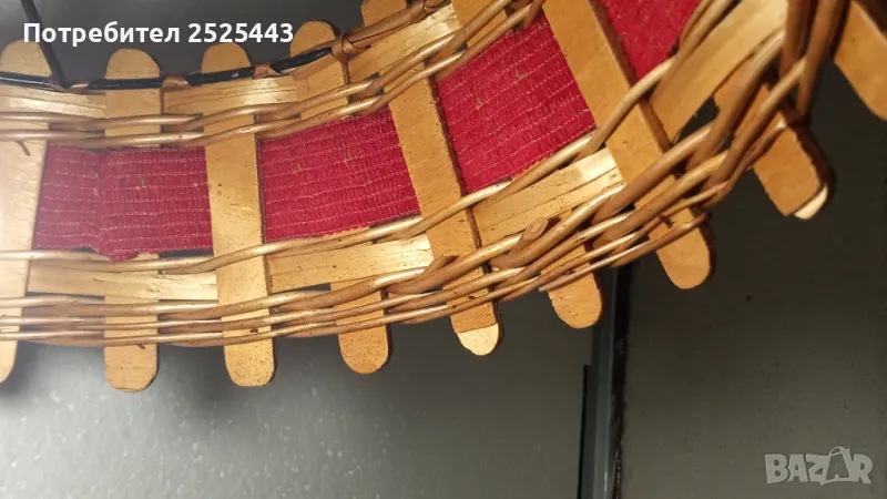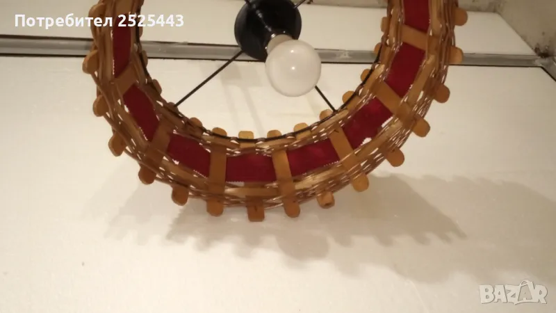 Абажур (Пендел) Е27 - метален с дървени елементи и текстил → Обява 41627549