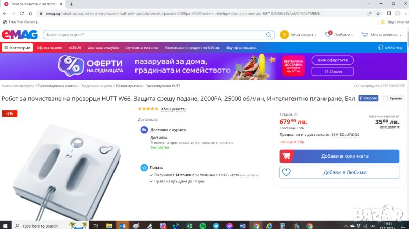 Робот за миене на прозорци Xiaomi Hutt W66 – за сухо и мокро