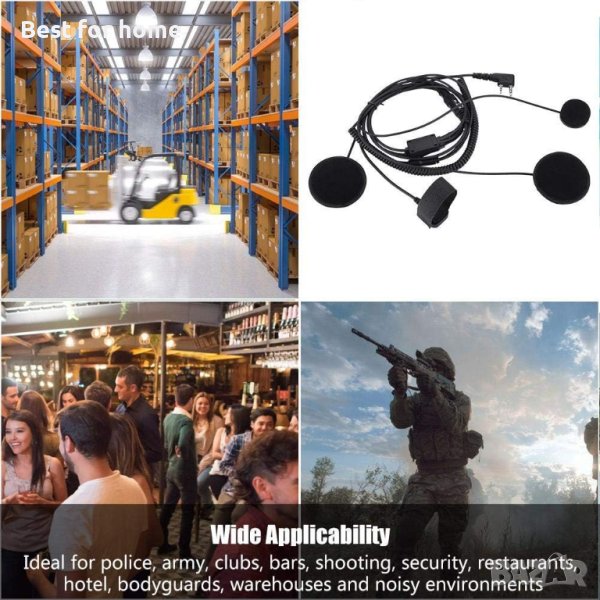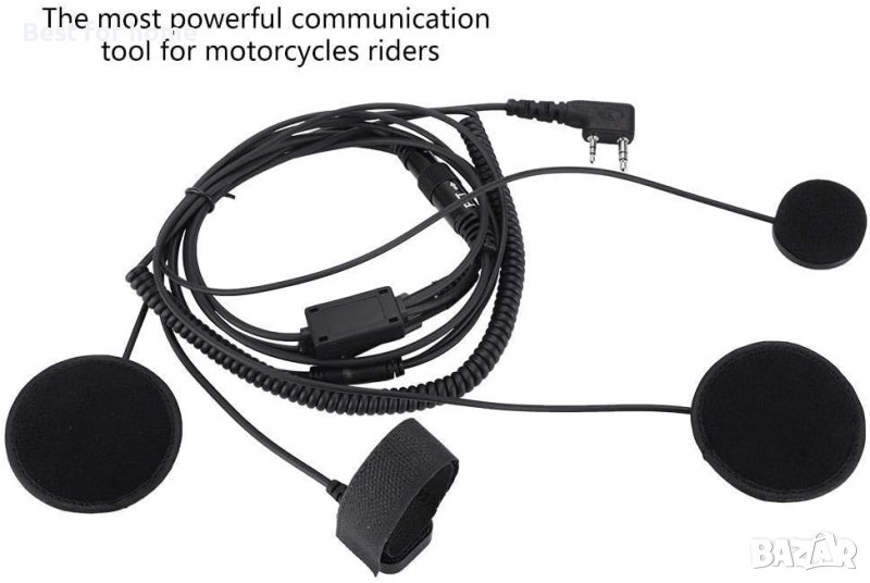 Това е най-мощният инструмент за комуникация за мотоциклети, моторни шейни и всеки друг спортист, носещ каска. РТТ с щипка, можете да го закачите на яката си, което е много удобно. И с голям бутон РТТ. Двойните високоговорители подобряват звука и осигуряват по-чист звук. Предлага се с допълнителен РТТ кабел за пръсти и е оборудван с лента, монтирана на кормилото. Вътре в каската ще бъдат монтирани два високоговорителя и един микрофон. Идеален за полиция, армия, клубове, барове, стрелба, охрана, ресторанти, хотели, бодигардове, складове и шумни среди.