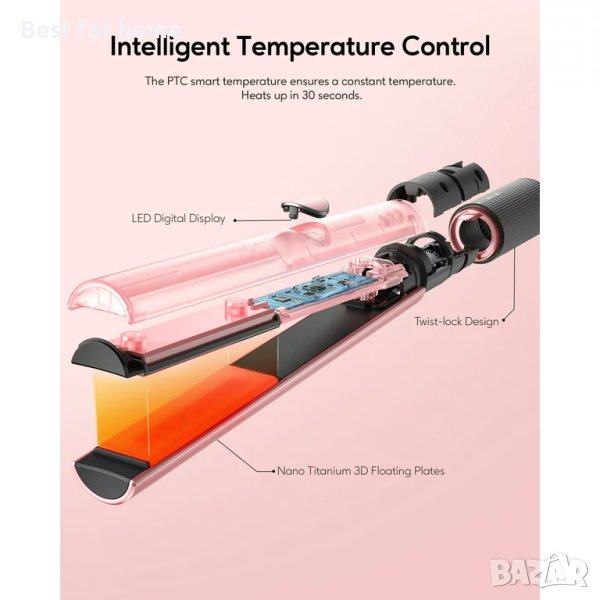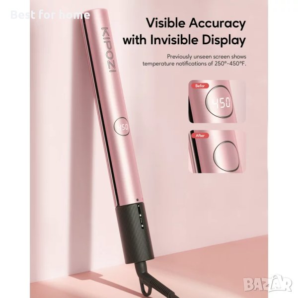 Интелигентен стил с интелигентен контрол (250℉-450℉) - Вие контролирате температурата в зависимост от вашия тип коса - колкото по-дебела е косата, толкова по-висока топлина може да приложите, до 450°F. Превъзходният топлопренос улеснява създаването на елегантни прави стилове или дефинирани вълни, които са издръжливи. Уникален LCD дисплей с уникален дизайн ви помага при прецизна настройка и следене на температурата.