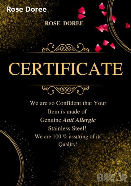 - Съхранявайте вашите изделия от неръждаема стомана в торбички от мек плат (Ние осигуряваме подаръчна опаковка, готова за поднасяне, в стилен черен цвят и малка флорална закачка) и осигурете минимален контакт с други бижута, особено метални или с други остри предмети.