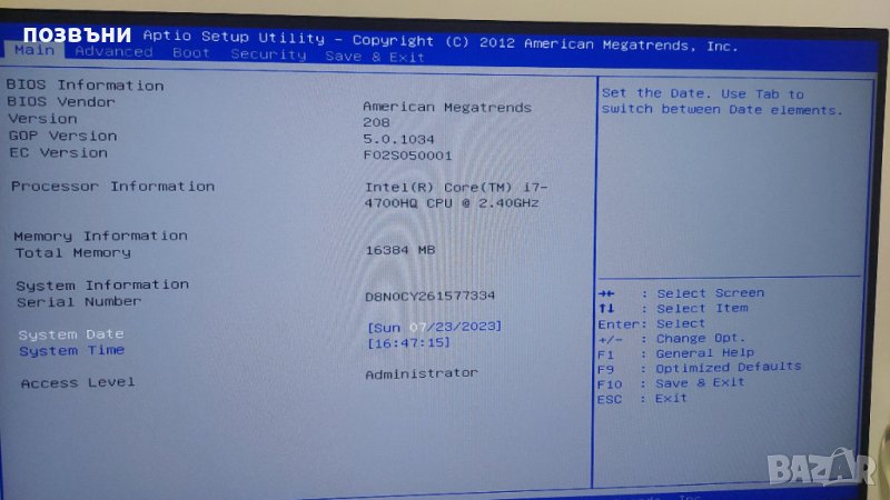 Работещ на части. С процесор Intel core i7-4700hq, видео карта nvidia geforce gt 750m. Клавиатурата има не работещи бутони. Батерията не държи. Тъчпада работи. Говорителите работят. Капака на матрицата е счупен.