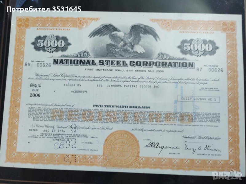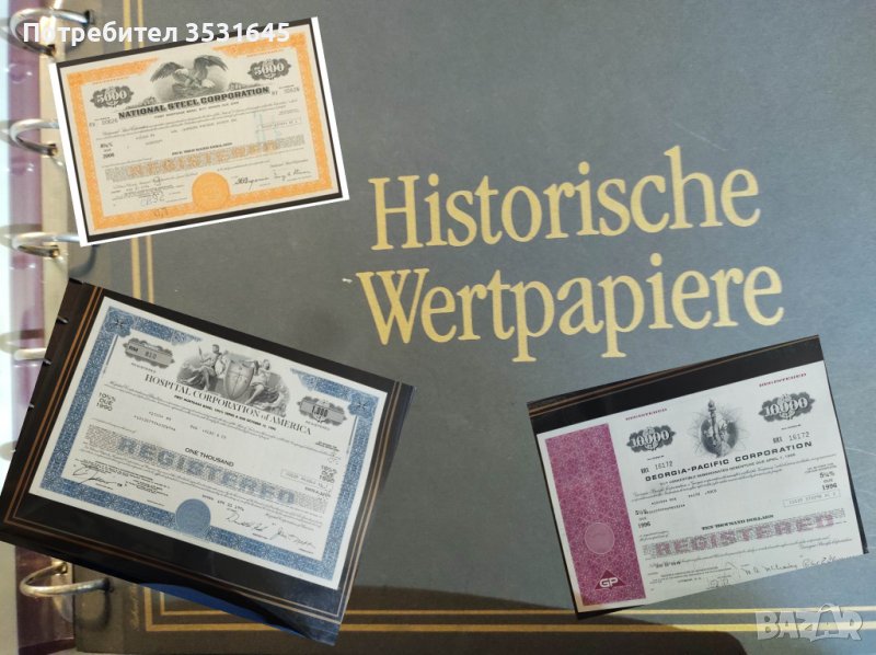 Продавам колекция от сертифицирани Американски акции и ценни
