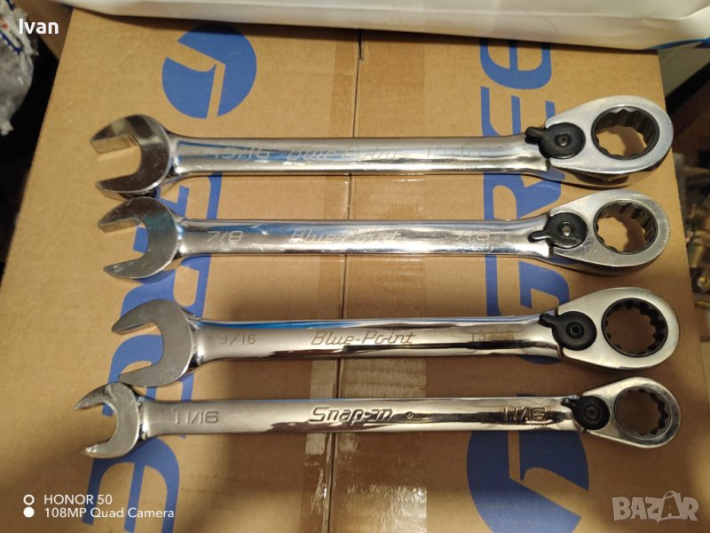 Продавам гаечни ключове на марката Snapon, Blue-point и Армстронг. Посочената цена е за всички 8бр и един брой бонус 1 1/16, като на Snap on 1/2 и 3/4 от снимките са продадени. По отделно цената е от 30 до 45 евро. Разгледайте снимките и пишете за съответния ключ каква е цената.