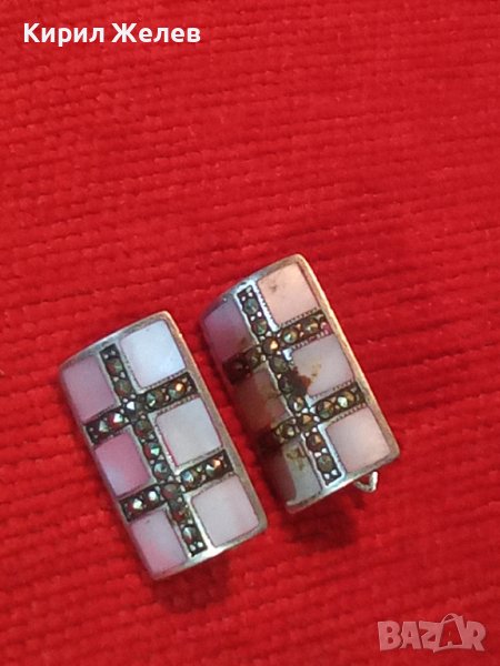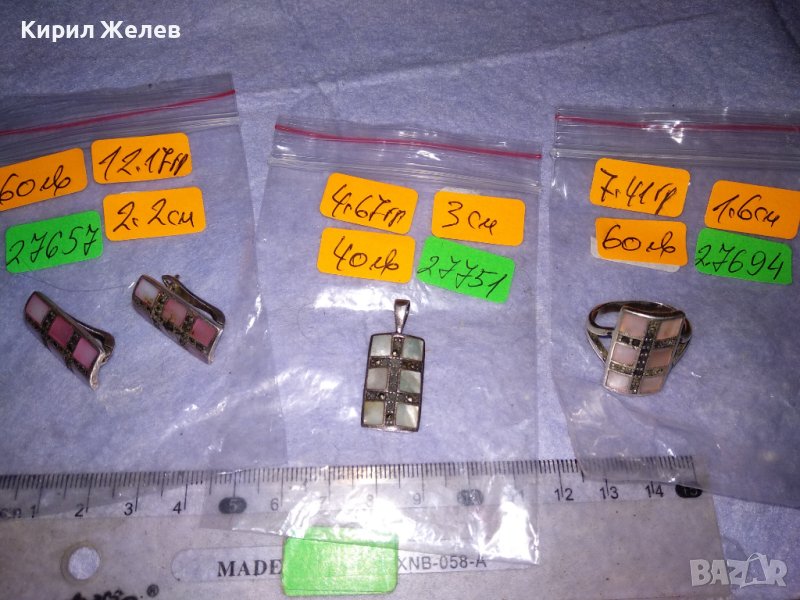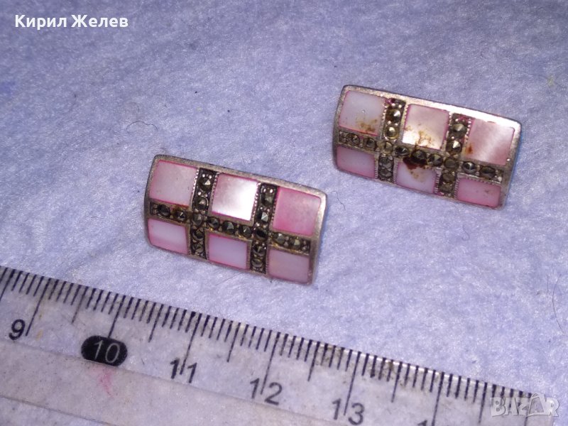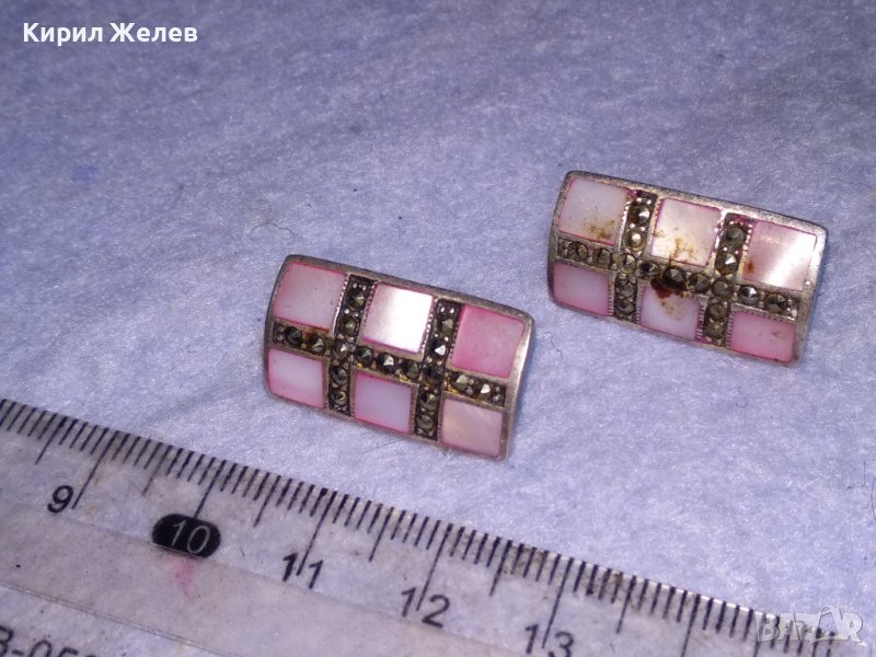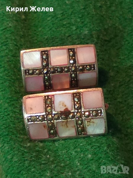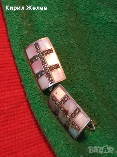 СРЕБЪРНИ СЕДЕФЕНИ АРТ ОБЕЦИ СРЕБРО 925 с ШЛИФОВАН РОЗОВ СЕДЕФ и МАРКАЗИТИ - ЧАСТ от КОПЛЕКТ 27657