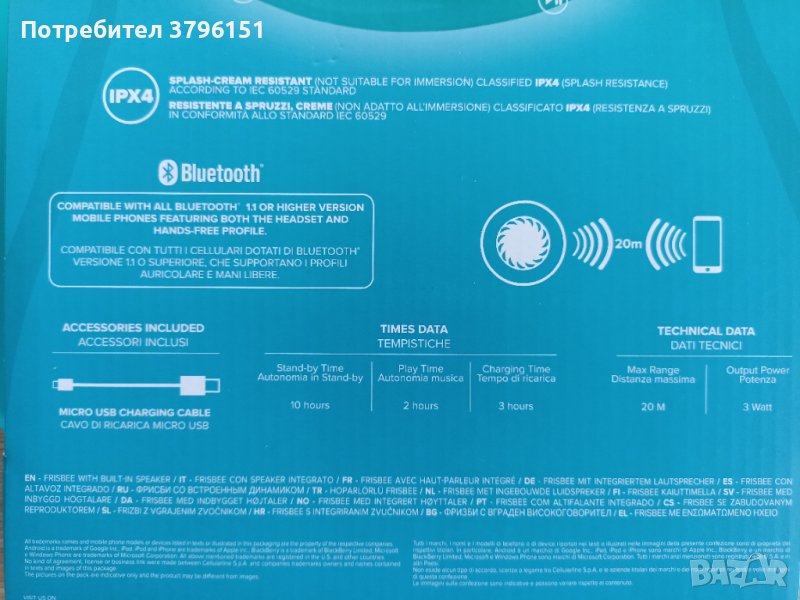 Фризби с вгадена Bluetooth колонка и светлини Frisbeat Cellular line, снимка 1 - Bluetooth тонколони - 41640586 Фризби с вгадена Bluetooth колонка и светлини Frisbeat Cellular line, снимка 2 - Bluetooth тонколони - 41640586 Фризби с вгадена Bluetooth колонка и светлини Frisbeat Cellular line, снимка 3 - Bluetooth тонколони - 41640586 Фризби с вгадена Bluetooth колонка и светлини Frisbeat Cellular line, снимка 4 - Bluetooth тонколони - 41640586 Фризби с вгадена Bluetooth колонка и светлини Frisbeat Cellular line, снимка 5 - Bluetooth тонколони - 41640586 1/5