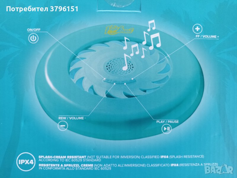 Фризби с вградена Bluetooth колонка, за слушане на музика от телефон и забавление на открито. Този уникален подарък за всеки е с обхват до 20 метра и сертификат IPX4, гарантиращ защита от водни пръски.