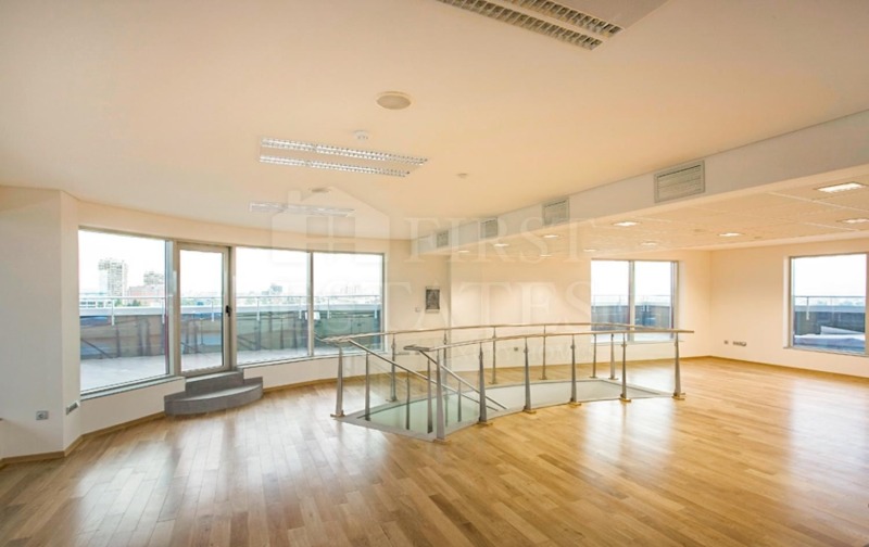 First Estates представя на вашето внимание отличен офис на последните два етажа на офис сграда. Намира се в офис сграда на бул. Цариградско шосе, 7 км. Метростанция Интер Експо център е само на няколко минути пеша. Нетната площ на поемщенията е 291 кв.м на 7-ми етаж и 112,3 кв.м. на 8-ми етаж. Допълнителн тераса от 204 кв.м. с чудесни панорамни гледки ще добави към имиджа на вашият бизнес.