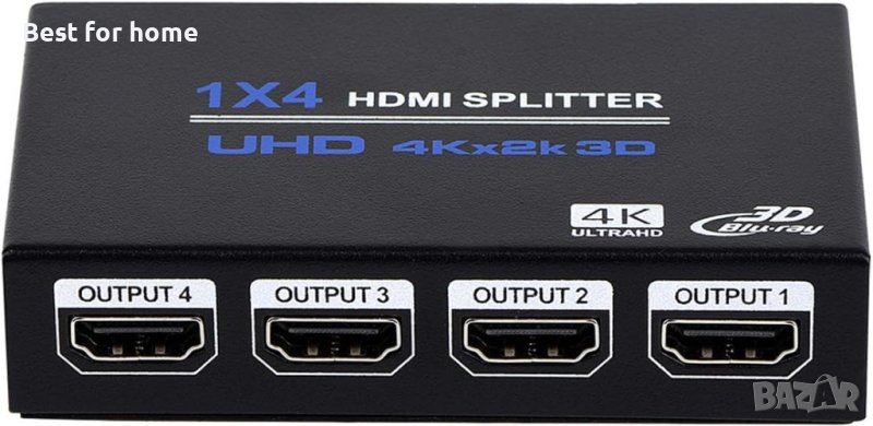1x4 HDMI сплитер, 1 в 4 изход HDMI сплитер Аудио видео разпределителна кутия Поддържа 3D & 4K x 2K Съвместим за HDTV, STB, DVD, PS3, проектор и т.н.