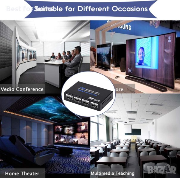 ЛЕСЕН ЗА ИЗПОЛЗВАНЕ: 1 вход 4 изхода, plug and play, без нужда от външен драйвер, безопасност и екологичност. Просто трябва да свържете 4K HDMI кабела към вашите устройства, за да се насладите на вашите филми или игри