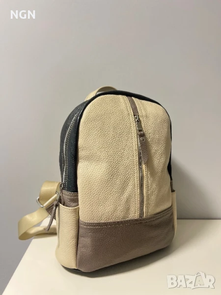 Модерна и красива раница от естествена кожа в атрактивна цветова комбинация. Раницата е чисто нова без забележките.