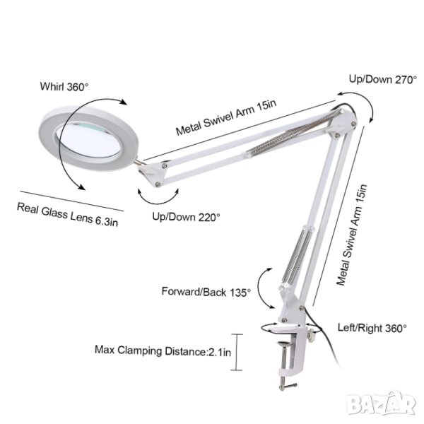 Козметична лампа лупа с 8 кратно увеличение. Лампата има много стабилно рамо, а SMD светодиодите осигуряват ярка светлина при ниска консумация на енергия.