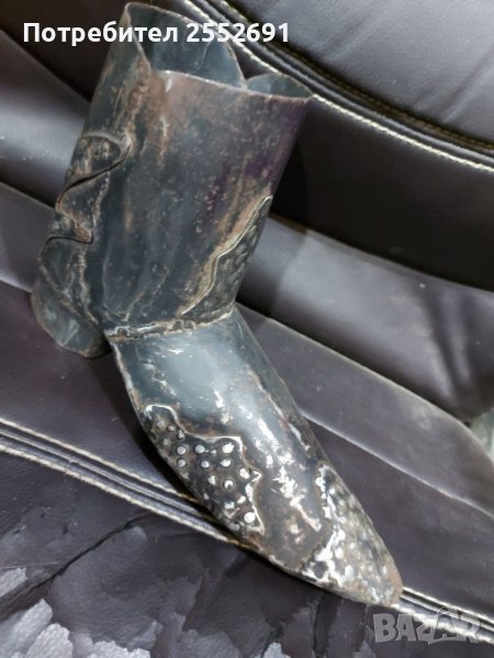 Метална, уникална, ръчно изработена обувка . Дължина- 23см. Височина- 14см.