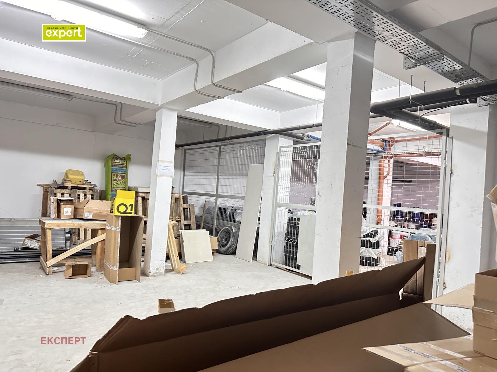 Складово помещение от 118 кв.м, прилежащ офис към него - 23 кв.м.Общ санитарен възел на етажа. В наема са включени месечните разходи за електричество.