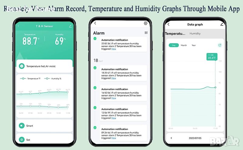 Ще получите незабавно предупреждение, след като температурата или влажността излязат от предварително зададения диапазон.