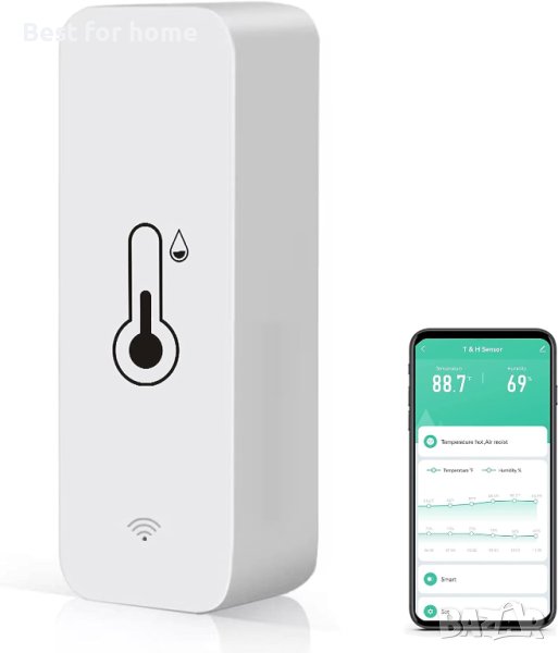 КОМПАКТЕН ДИЗАЙН И РАЗЛИЧНИ МЕТОДИ ЗА ИНСТАЛИРАНЕ: Wi-Fi термометър, влагометър на закрито е достатъчно малък, за да се побере в саксийни растения, вивариуми за влечуги, овлажнители за пури и други малки пространства. Можете да поставите този безжичен дистанционен термометър на всяко място в дома си или да го монтирате на стената или други места със стикера или винтовете