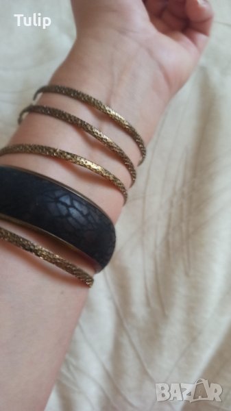 Комплект от 4 тънки и една по-широка гривна. Две от тънките са се разделили.