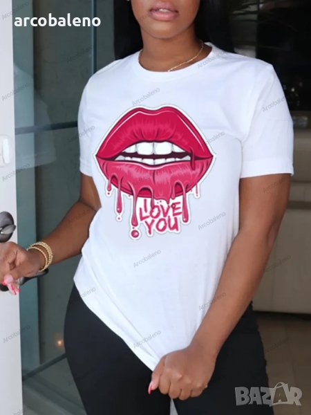 Дамска тениска с графичен принт на устни за свободното време, 7цвята