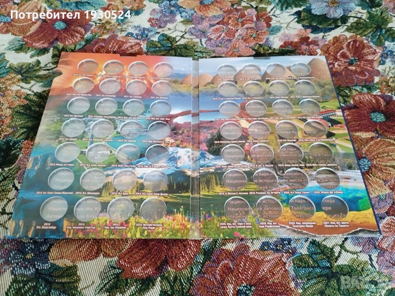 Нов колекцинорски албум за 25 центови монети от категория "Национални паркове" на САЩ. Албумът е за всичките 56 национални парка разположени на територията на всеки щат на САЩ. Размерите на албума са 24,5 см на 17 см. Албумът се продава без монетите в него. Цена на албума 75 лева.