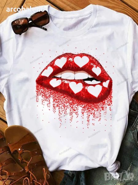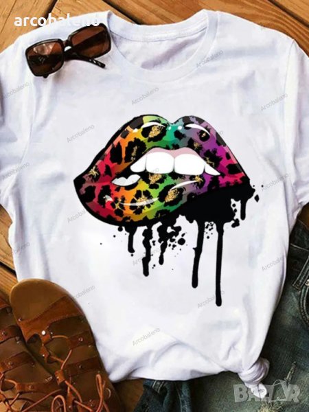 Тази секси тениска с леопардов принт с устни е изработена от 95% полиестер и 5% спандекс, предлагаща удобна и еластична кройка. Със своето кръгло деколте и къси ръкави, това горнище е стилно и идеално за всеки сезон. Идеален за добавяне на дива нотка към вашето облекло.