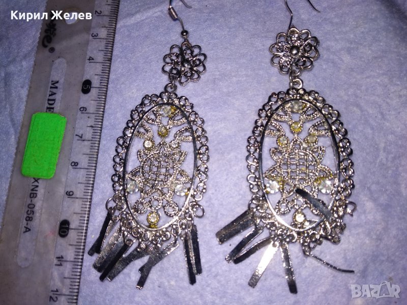 СРЕБРИСТИ АЖУРНИ РЕТРО СТИЛ ОБЕЦИ БЛАГОРОДНА СТОМАНА с КРИСТАЛЧЕТА 38614