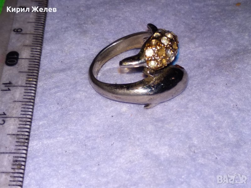 СТАР ПОСРЕБРЕН ФИГУРАЛЕН КРИСТАЛЕН АРТ ПРЪСТЕН - ДЕЛФИНЧЕТА от БЛАГОРОДНА СТОМАНА 14539