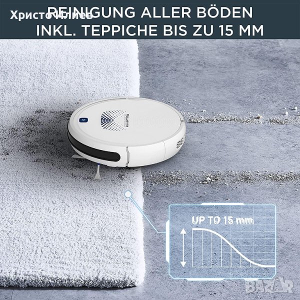 Освен това тя е оборудвана с три режима за навигация – Auto, Auto Express и Wall-Follow – за да обхваща дори сложни области, да обира прах и замърсявани в областта около стени и первази и още.