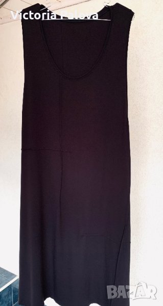 Тежка студена рокля A-силует с удължен разрез в областта на мишница - стилизира се с тениски, бюстиета, бралети или красив спортен сутиен - тренд на сезона. Роклята е разтеглива, пада тежко и стои много красиво, отзад и отпред на различни страни има красиви тегели със “защип”, което я прави интересна. Много удобна , не се глади, идеална е за всеки ден. ГО - 60см, дължина - 120см.