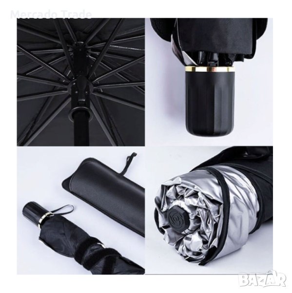 Начин на употреба: Отворете чадъра и го поставете на предното стъкло в колата и го фиксирайте със сенници. След употреба сгънете като обикновен чадър и след това го приберете в калъфа.
