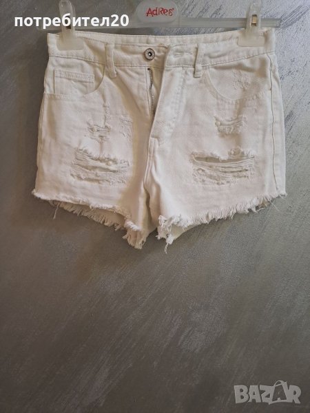 Бели къси панталони с висока талия с перли → Обява 41656225