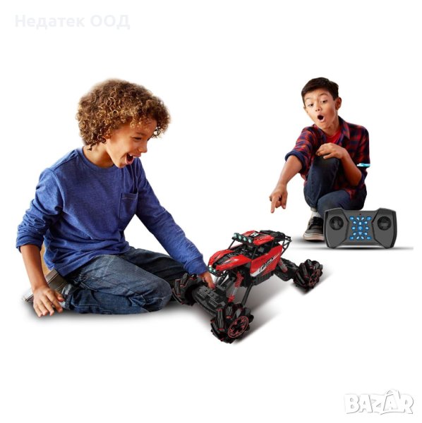Rock Crawler RC превозно средство с дистанционно управление. Има пълна функционалност, големи колела с уникален дизайн за най-невероятните трикове, въртене на 360º и възможност за странично движение надясно и наляво. Има обхват 25-30м и ориентировъчна продължителност на работа 25 минути. Със светлини, музика и контрол на звука. Работи с 1 батерия 3.7V 1200 mAh за автомобила (включена) и 2 батерии AA за контролера (не са включени).