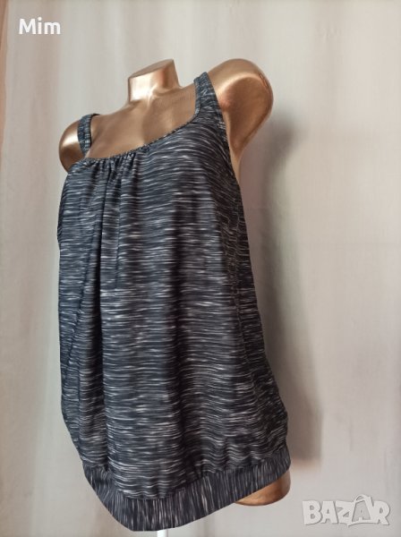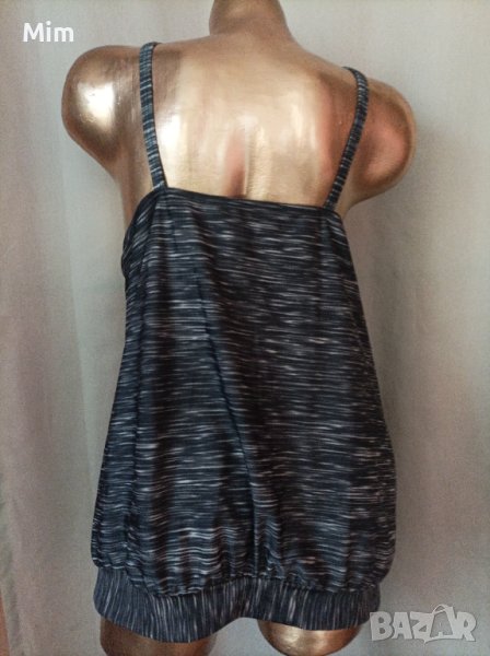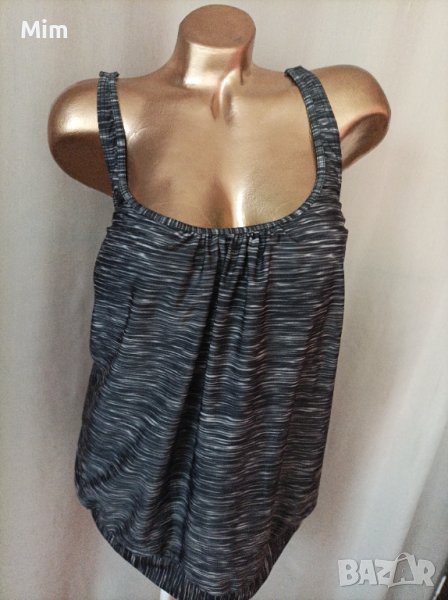 Сиви меланж танкини ,с колан отдолу , на бюста с бюстие с подплънка показано на 3 та снимка обратно заснето,под мишниците от 70 до 85 см едностранно,надолу се спуска свободно ,колан отдолу от 65 до 85 см едностранно, дължина от подмишница 45 см . Неразличимо от ново без хартиен носител.