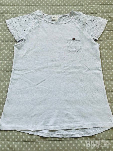 8/ Снежнобяла памучна блузка H&M с джобче и ръкави от рязана дантела. Отлична. Цена 10 лв.