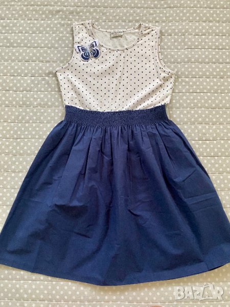 3/ Красива рокля LCWaikiki в тъмносиня долна част; горната е на точки и с прекрасна декорация пеперуда. В отлично състояние. Цена 15 лв.
