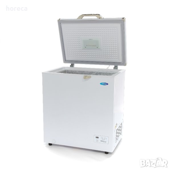 Фризерът е с ръчно размразяване и цифров термостат за точен контрол на температурата. Оборудван с охлаждаща система с вентилатор и LED светлина в капака.