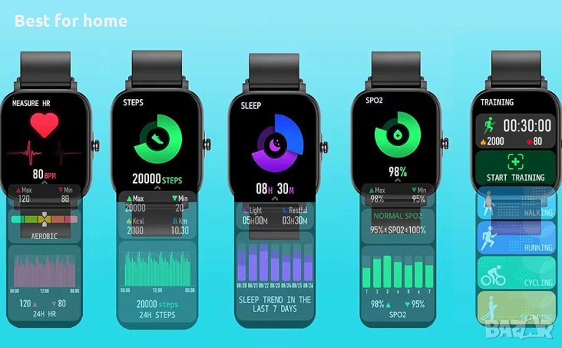Многофункционален перфектен личен партньор: Спортен фитнес часовник включва повече практични функции, фитнес тракер (крачкомер, калории, разстояние), монитор на пулса, 8 спортни режима, монитор за сън, известия за обаждания, SMS и съобщения от APP, управление на музика и камера, настройка на яркостта, Дисплей за времето, напомняне за заседнал начин на живот, будилник, хронометър, часовник за намиране. Смарт часовникът може да бъде съвместим с устройства с IOS 9.0 и по-нови или Android 5.0 и по-нови.