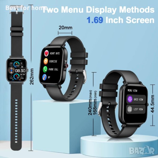 Смарт часовник за мъже жени 1,69" инча фитнес тракер спорт