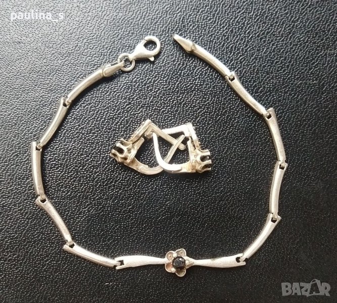 Антика / Стара сребърна гривна проба 925 с черен шпинел