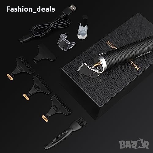 Многофункционален комплект за подстригване: Черен неплъзгащ се текстурен дизайн, деликатен и компактен, лесен за държане. Включва 3 гребена (1/2/3 мм), четка за почистване, защитен калъф, USB кабел, масло за смазване, инструкция.