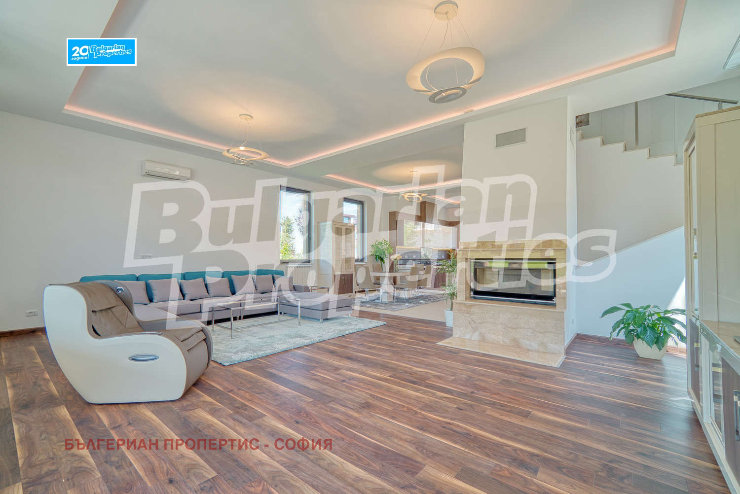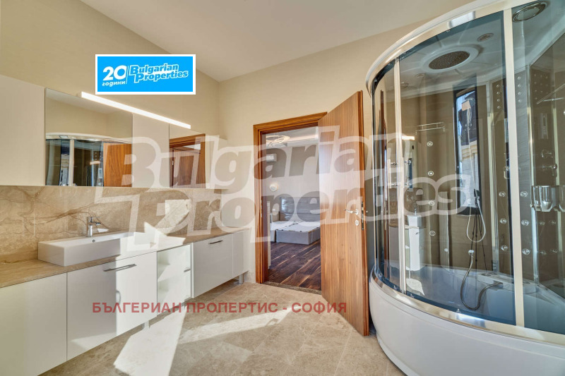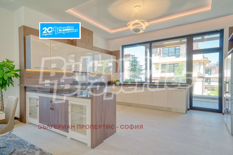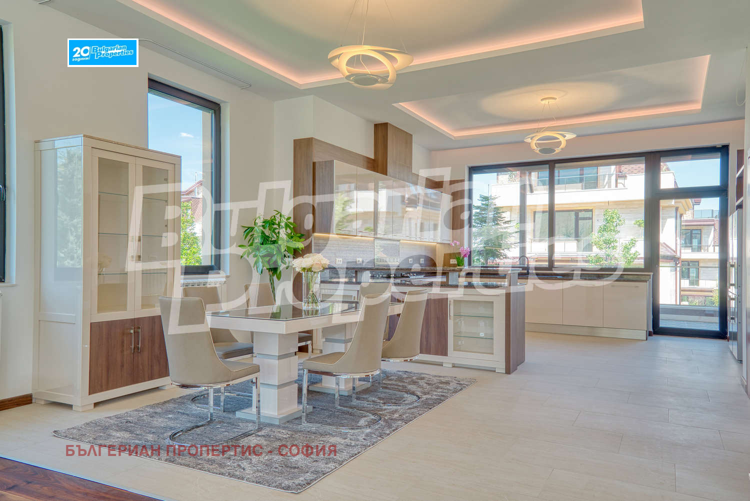 Къщата е напълно обзаведена и се състои от хол, трапезария и кухня, две веранди и 4 спални, всяка със собствена баня, гардеробно помещение и балкон. За да бъде удобството още по-голямо, към къщата има фитнес, сауна, гараж за две коли и 4 външни паркоместа. На покрива има панорамна тераса с площ от 62 кв.м., която е изключително подходяща за барбeкю и слънчеви бани.