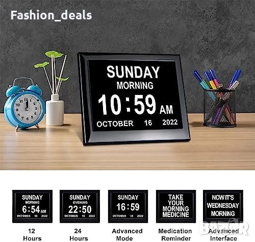 8-инчов HD цифров часовник с дневен календар за лесно четене.