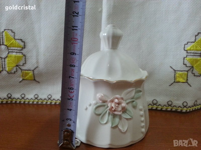 Стар български костен порцелан Бононя захарница с декорация пластика ръчна изработка без забележки неизползвана ретро арт декор винтидж колекция стари антикварни предмети обзавеждане за дома и семейството подходяща за подарък за ценители и колекционери