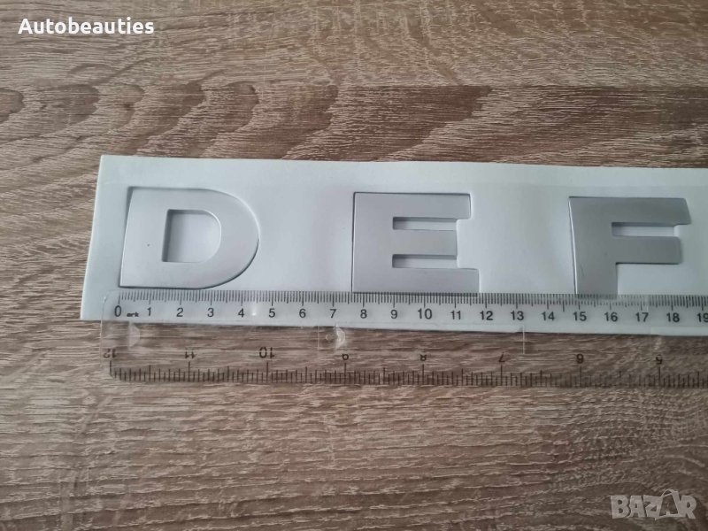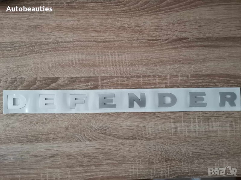 Нов сребрист надпис за модела Defender на Land Rover. Размерите са дадени на снимките.
