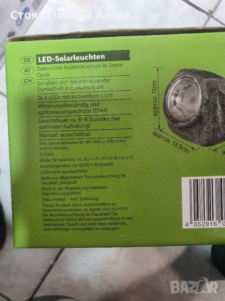 Соларни лампи камъни всички параметри и размери може да видите на снимките Разгледайте и другите ми обяви или посетете магазина в квартал трите чучура север 100