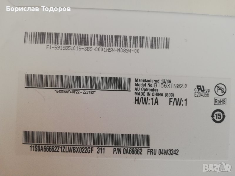 B156XTN02.0 H/W: 1A, F/W: 1. P/N 0A66662 FRU 04W3342